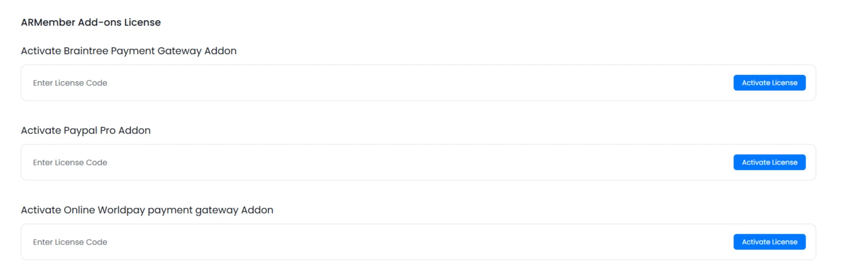 ARMember -> Licensing -> ARMember Add-ons Licensesection. - Click on