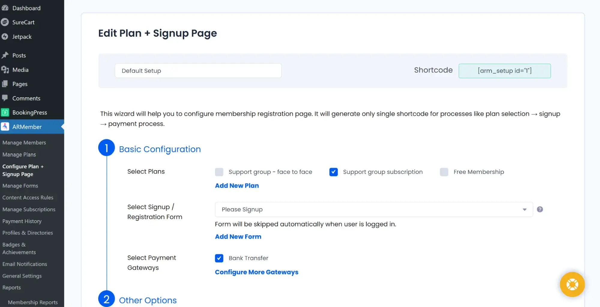 | Membership Setup | ARMember Membership Setup Form | Display your plan selection and signup flow. |