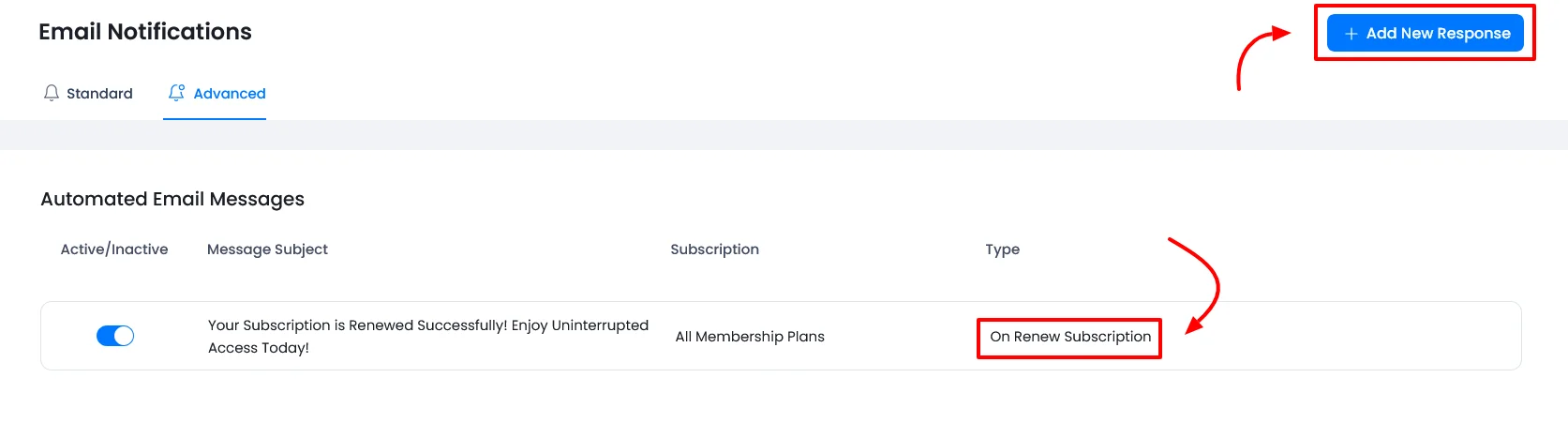 ARMember does provide a facility to send email notifications when a member renews their membership. This email can be sent out to both, the members and the admin as well. In order to set this mail, one can navigate to the ARMember ⇾ Email Notifications ⇾ Add New Response. Furthermore, at the popup dropdown select the mail title as On Renew Subscription and add the mail content as per your requirements.