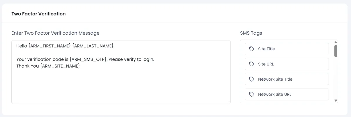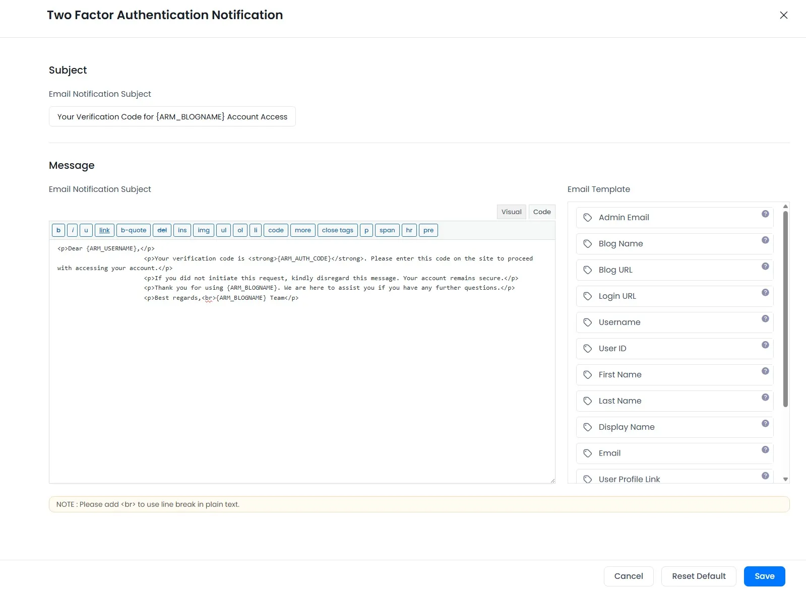 ARMember->Email NotificationEditTwo Factor Authentication Notificationtemplate. -