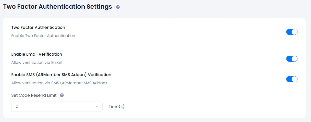 ARMember->General Settings->General Options-> Two-Factor Authentication section. Enable Two-Factor authentication. -